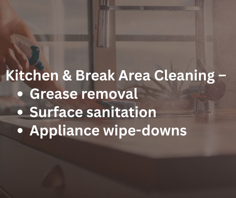 From spotless break rooms to polished boardrooms, we create clean, professional spaces that leave a lasting impression